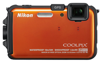 Nikon AW100 is Nikon’s first camera in the under-water category. This rugged 16MP camera comes equipped with a GPS tracking feature. It has a 5x zoom, and is effective to a depth of 33 feet. It is also freeze-proof down to a temperature of 14 F and can survive drops of 5 feet. One of the most interesting and innovative features of this camera is Action Control. This feature allows you to change settings with just camera shake, perfect for the situations when you have your diving gloves on.